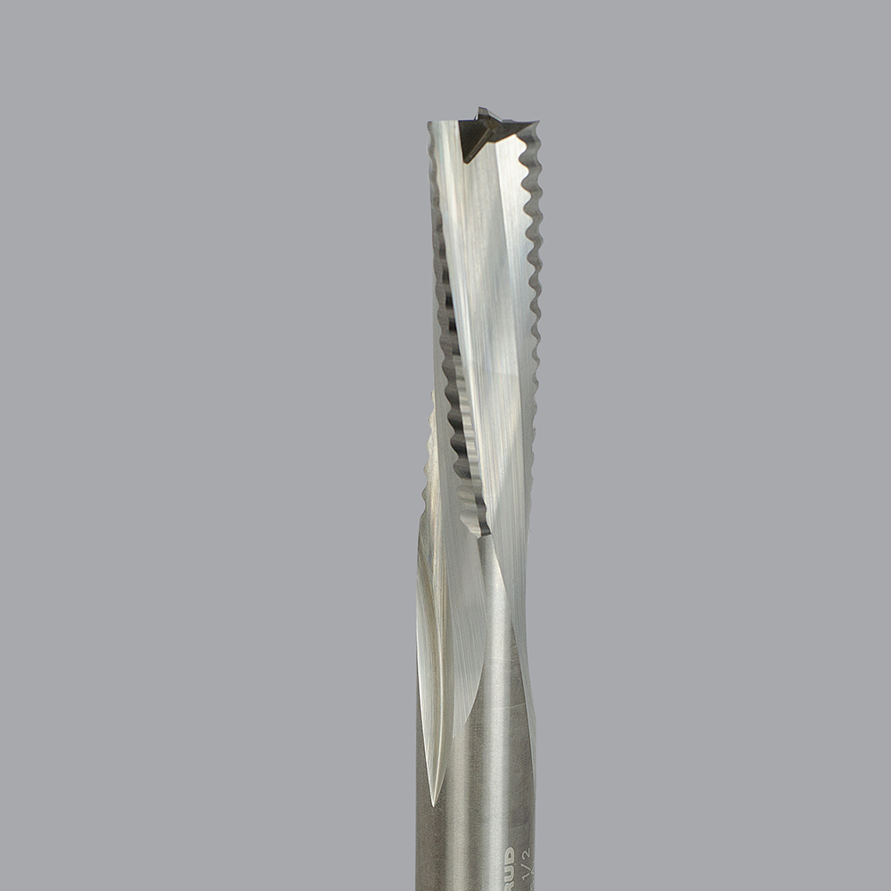 Designed with unique scalloped cutting geometry which provides extremely fast roughing, lower horsepower requirements, longer tool life, and reduced chipping in solid wood materials.