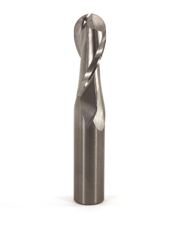 Ball Nose Spirals leave a rounded bottom during cutting while still providing a better shear cutting angle like their standard spiral counterparts. These are mainly used with small CNC’s but can be used in a router or router table. The up cut flute design pulls chips up and away from the work piece.